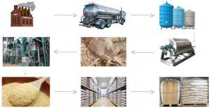 Dried brewer’s yeast is a by product from the breweries, which use the micro-organism and fungal yeast Saccharomyces cerevisiae. Dried brewer’s yeast is obtained by the removal of yeast after the brewing process and subsequent inactivation by means of organic acids . Dried brewer’s yeast is used as a flavouring ingredient in the food industry, and as feedstuff for pigs, ruminants, poultry and fish. Dried brewer’s yeast is mainly a source of protein, vitamins and minerals . Yeast inactivation is necessary to prevent further fermentation after consumption by animals, that may cause severe gastro-intestinal problems in pigs . Dried brewer’s yeast is a highly valuable source of protein, phosphorous and B vitamins. Dried brewer’s yeast may be fed fresh (liquid form) or dried (dried brewer’s yeast), which is costly and thus only used in specialty feeds .